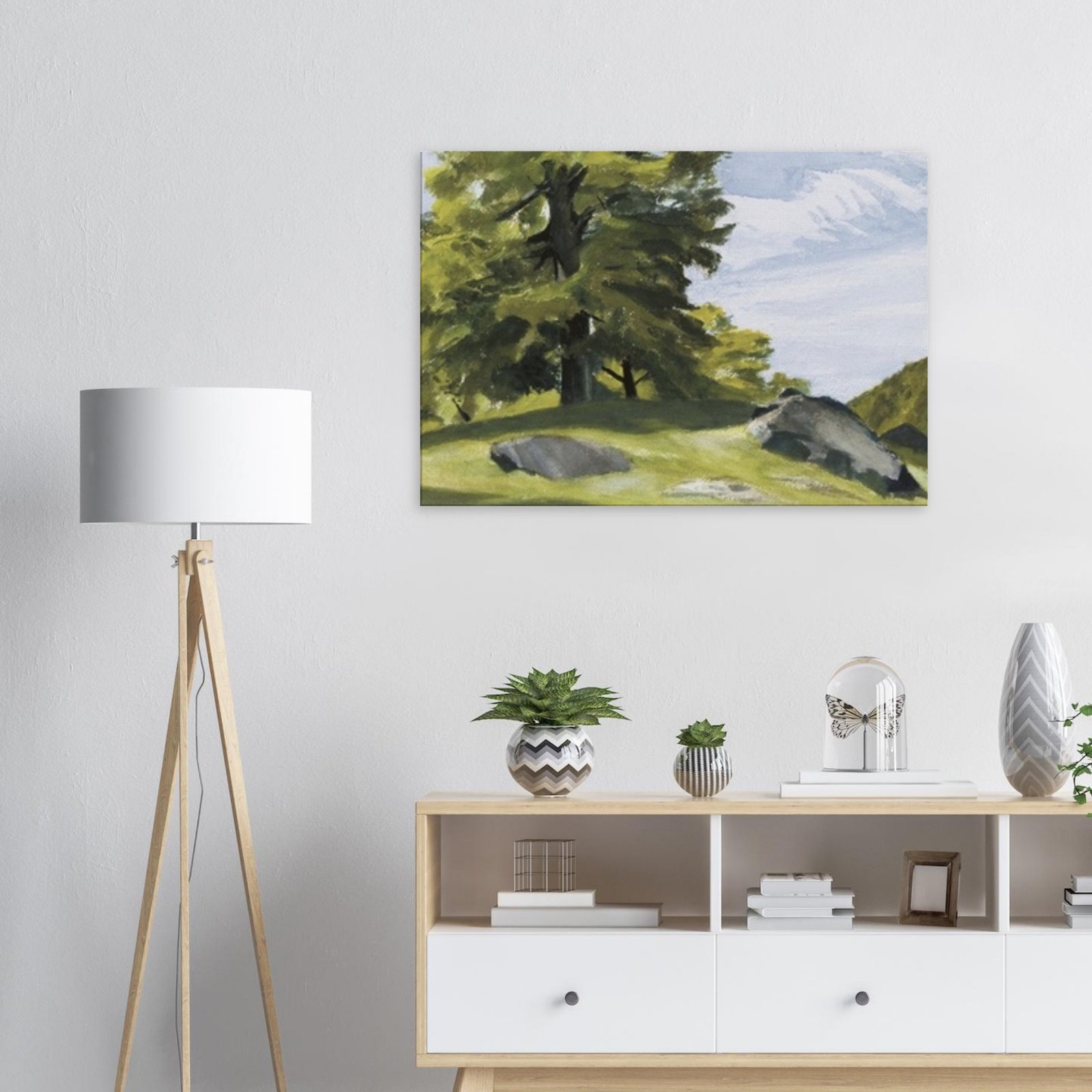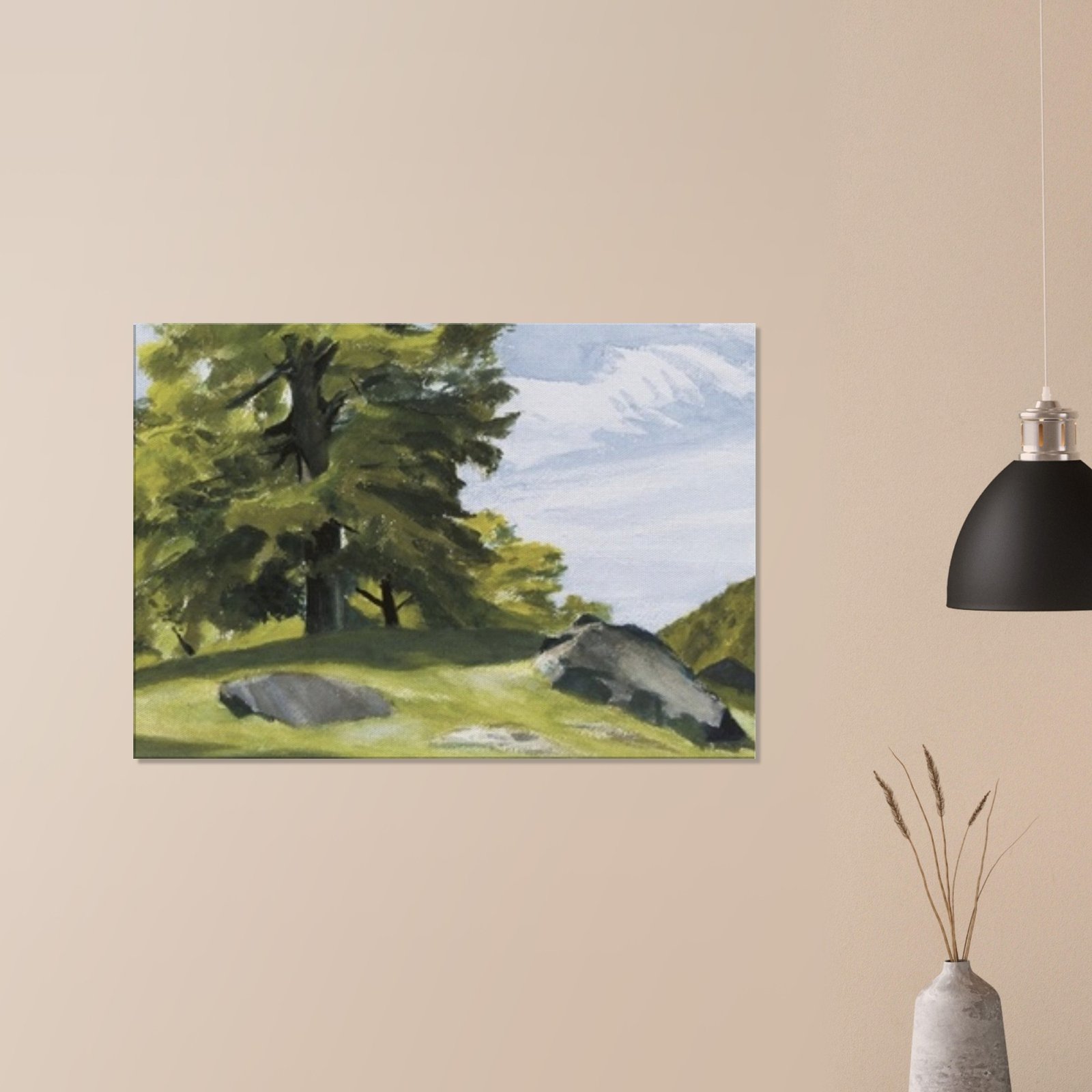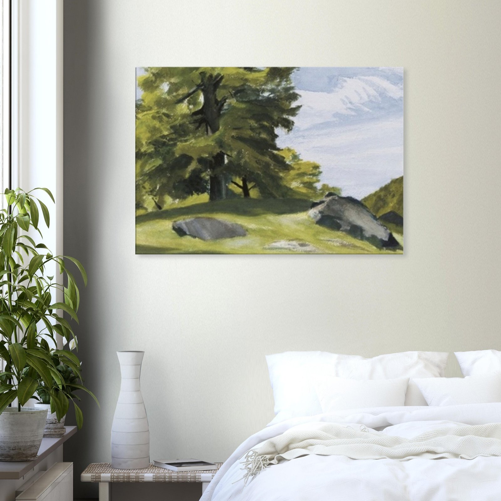 Transform your space with our stunning canvas print featuring huge trees and scattered rocks, capturing the majesty of nature in exquisite detail. The enhanced texture and timeless beauty of this wall art brings a sense of tranquility and adventure to any room.