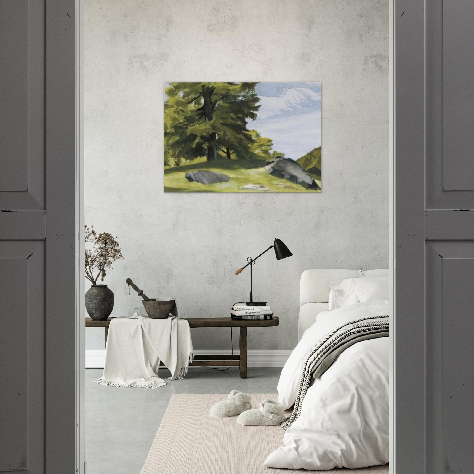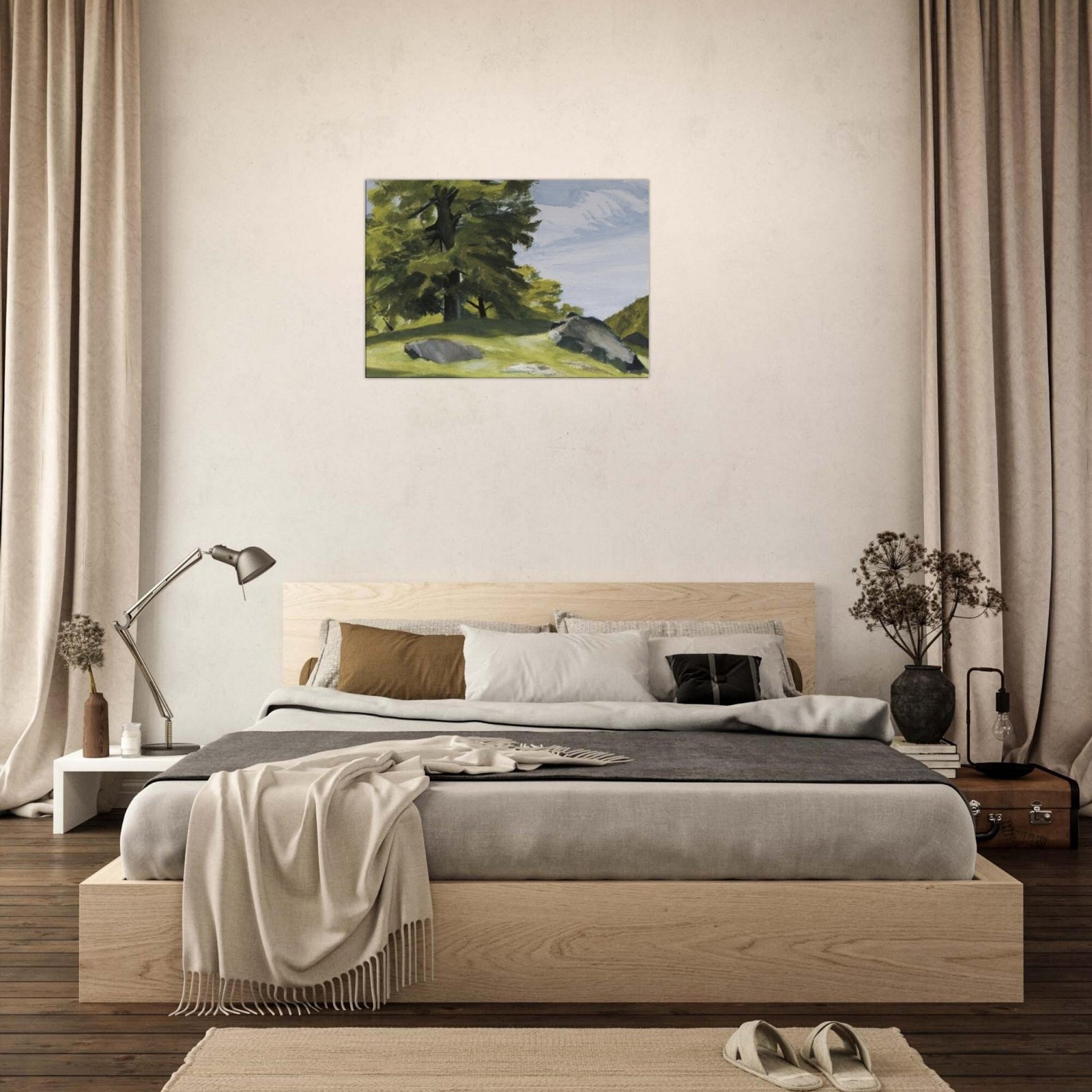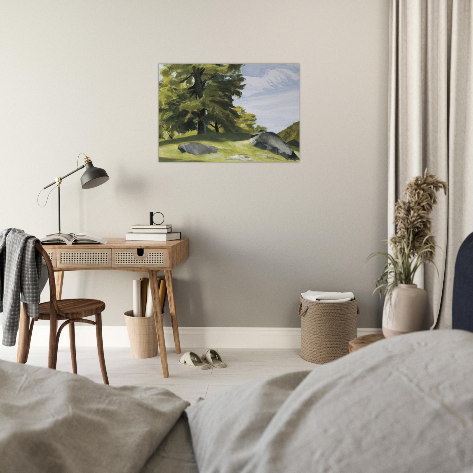 Transform your space with our stunning canvas print featuring huge trees and scattered rocks, capturing the majesty of nature in exquisite detail. The enhanced texture and timeless beauty of this wall art brings a sense of tranquility and adventure to any room.