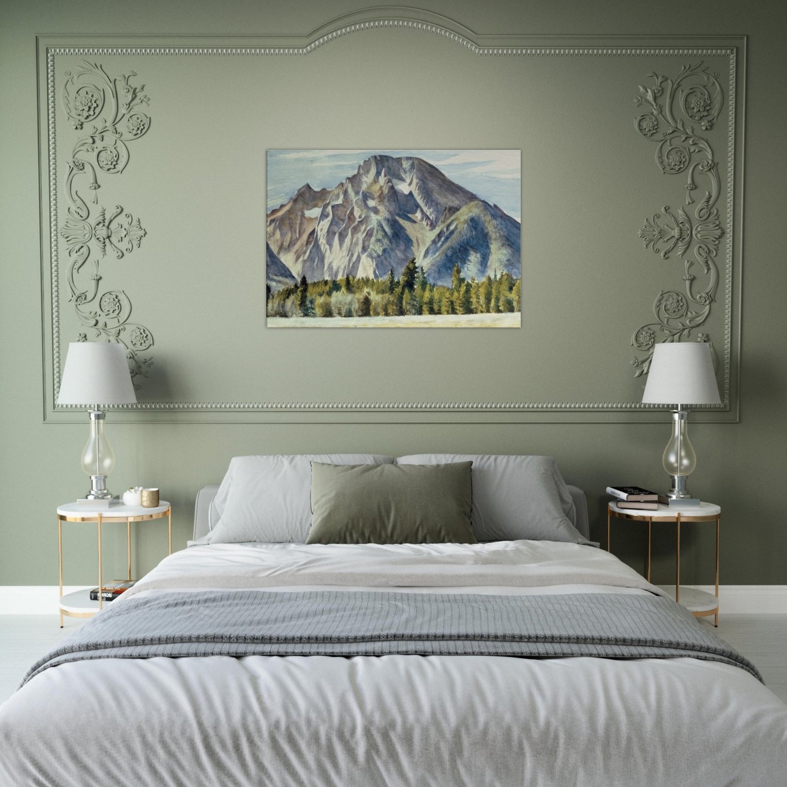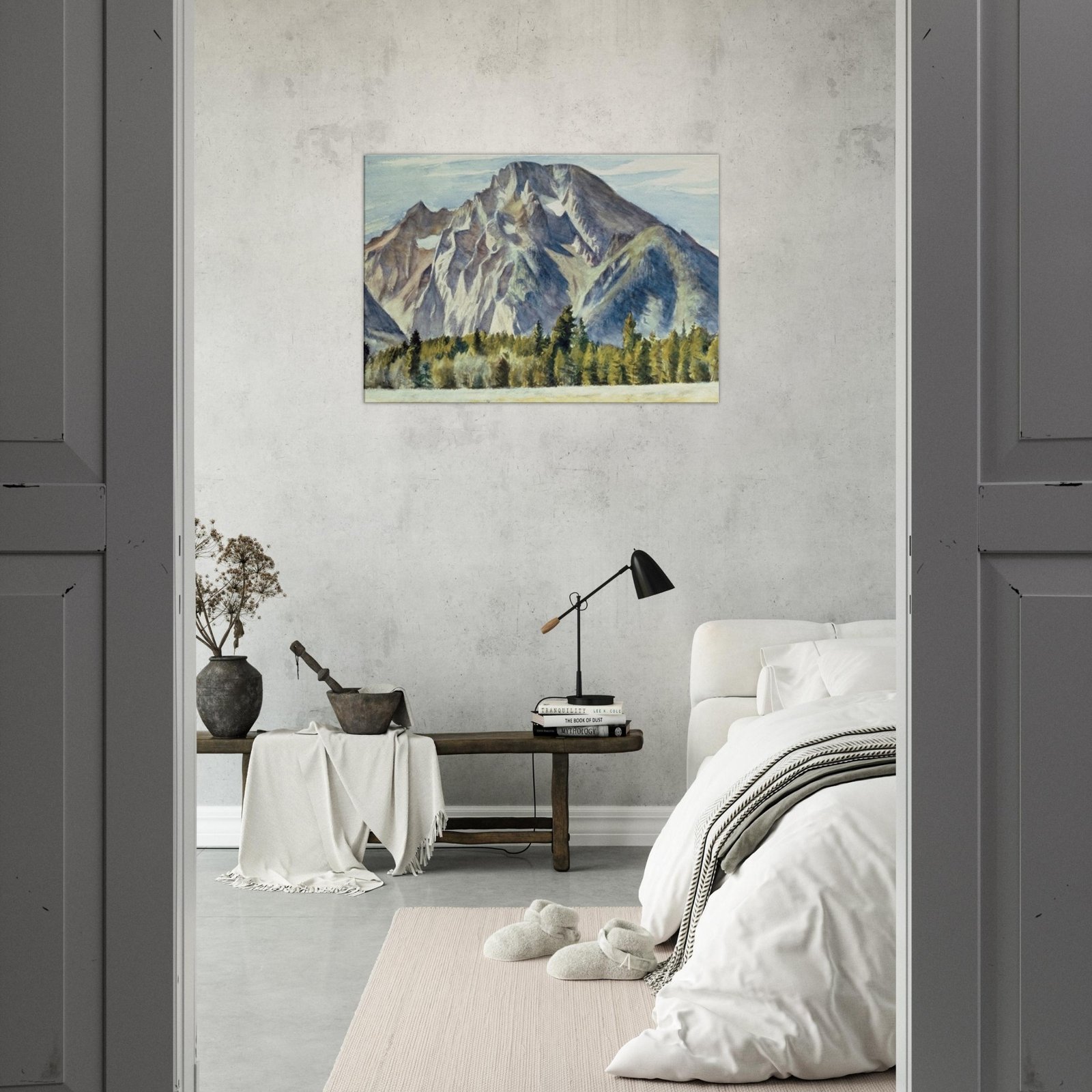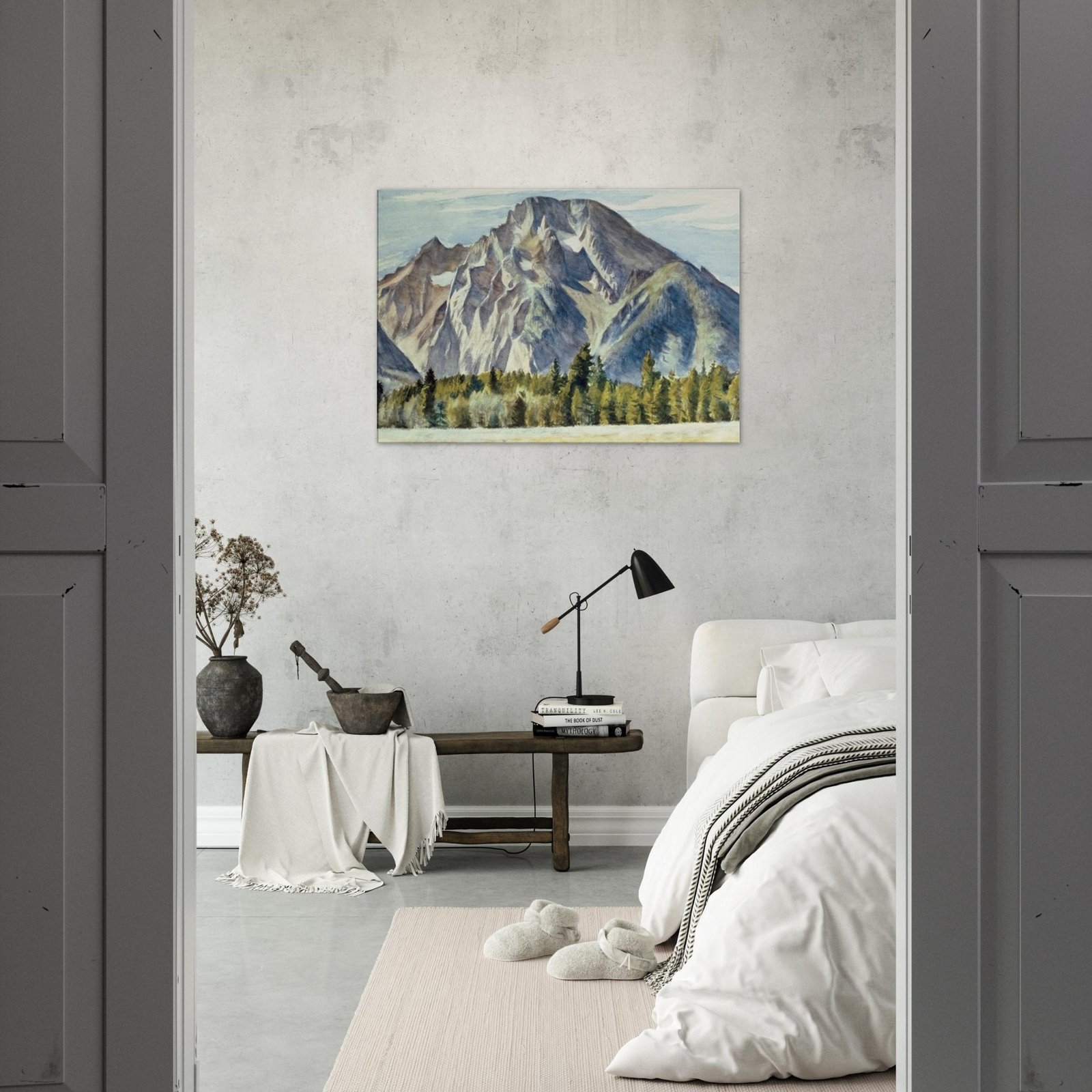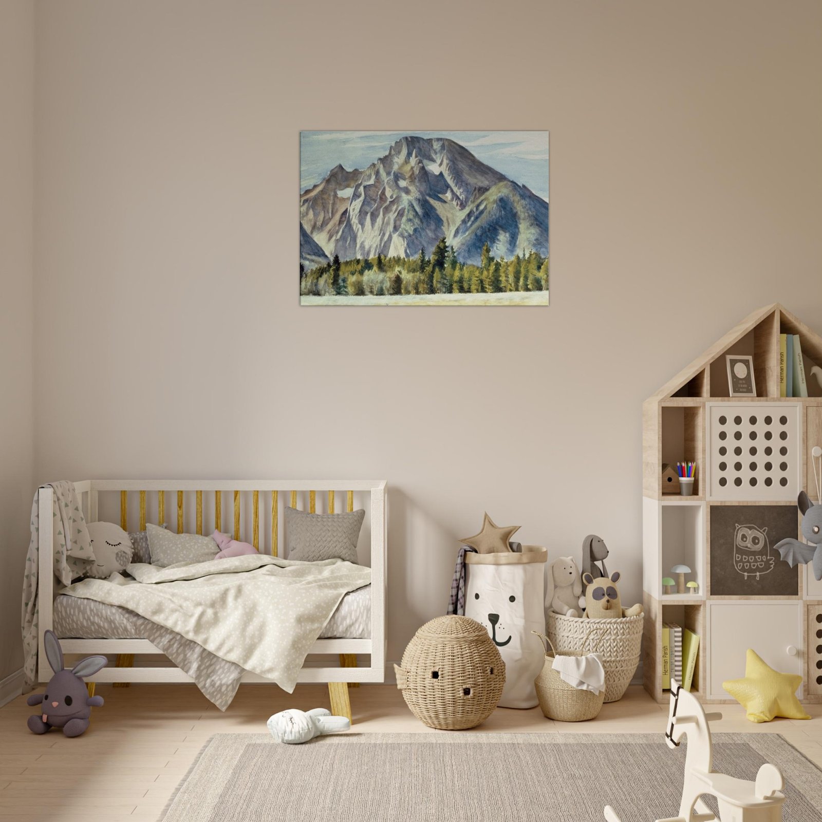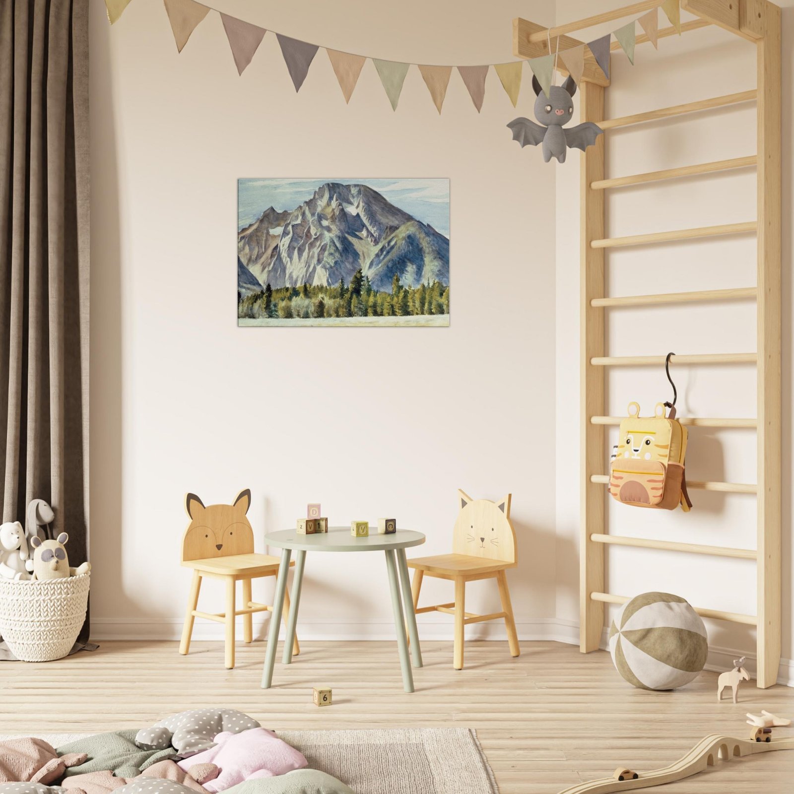 Transform your space with our Majestic Mountain Canvas Print, featuring a breathtaking view of towering mountains and serene trees nestled in a lush valley. This stunning artwork brings the beauty of nature indoors, adding a touch of tranquility to any room.