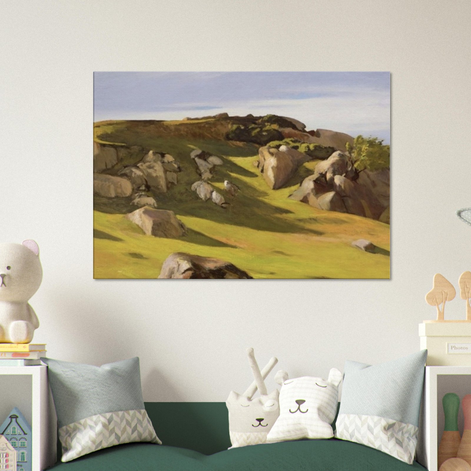 Transform your space with our stunning Hill Canvas Print, featuring an enchanting landscape of a hill adorned with massive rocks that evoke a sense of peace and nature’s raw beauty. This canvas art piece is not just a decoration; it’s a statement that brings serenity into any room.